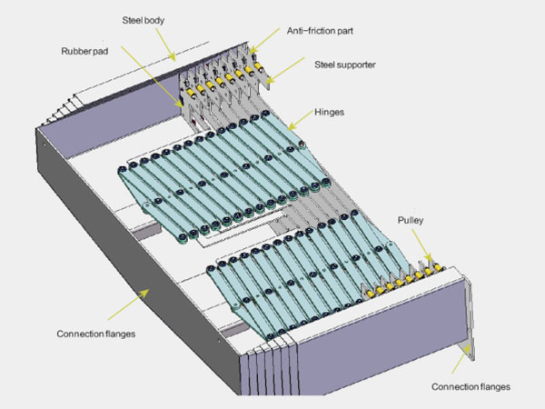 Está compuesta por una construcción y soporte de acero, polea, bisagras, franjas de pegamento, almohadilla de caucho,bridas de conexión, etc. La proporción entre la longitud estirada y la longitud comprimida es de 3:1 ?5:1. Utilizamos material de primera clase, es decir, sus304} 1Cr13, laminado en frío etc., todos ellos procesados mediante una cortadora láser de alta precisión y una máquina dobladora de Amada.
